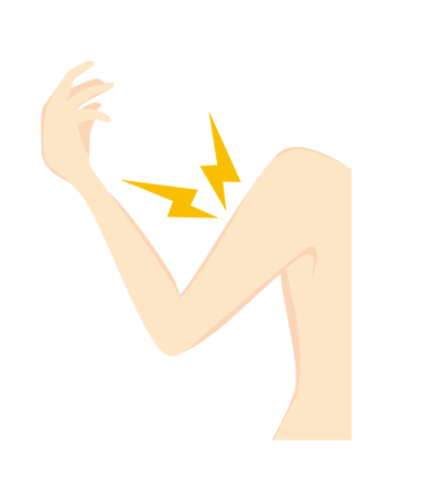 - 力こぶの周辺を触ると痛みがある